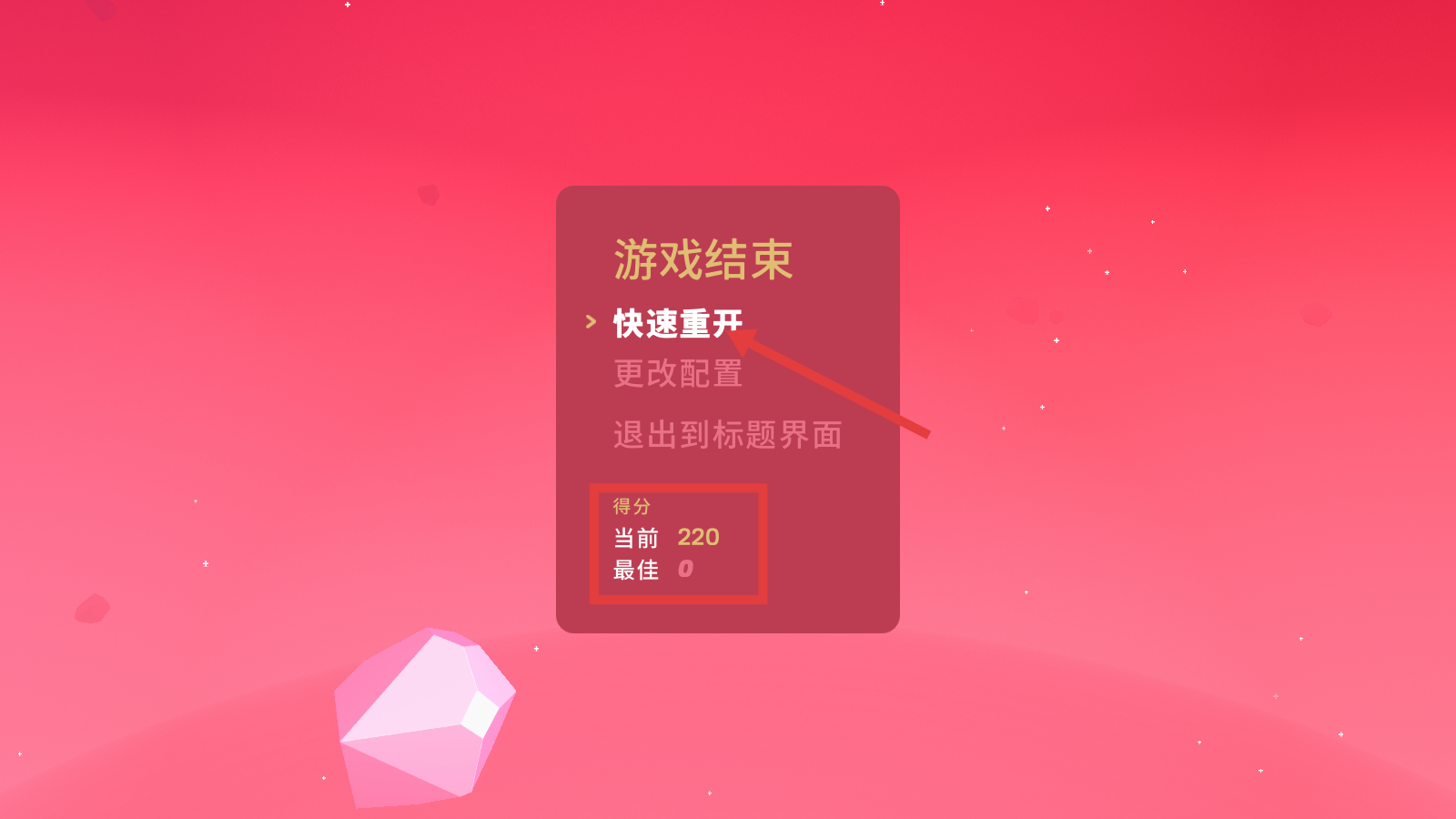 4、结算页查看【得分-当前220】,点击【快速重开】挑战,尝试突破最佳纪录,优化战斗表现。