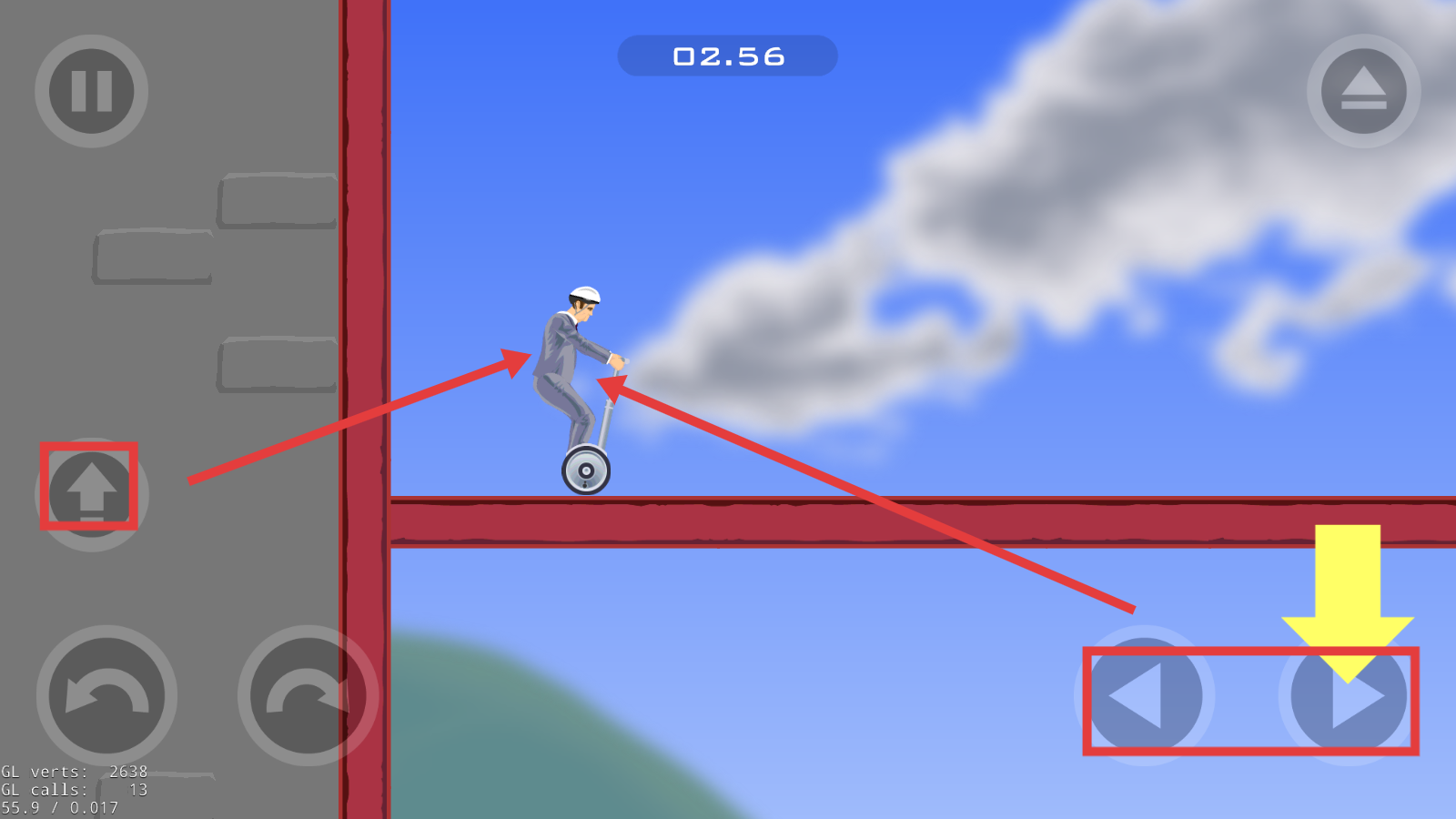2、利用左侧【向上箭头】与右侧【左右箭头】,调整平衡车行进方向,维持移动稳定。