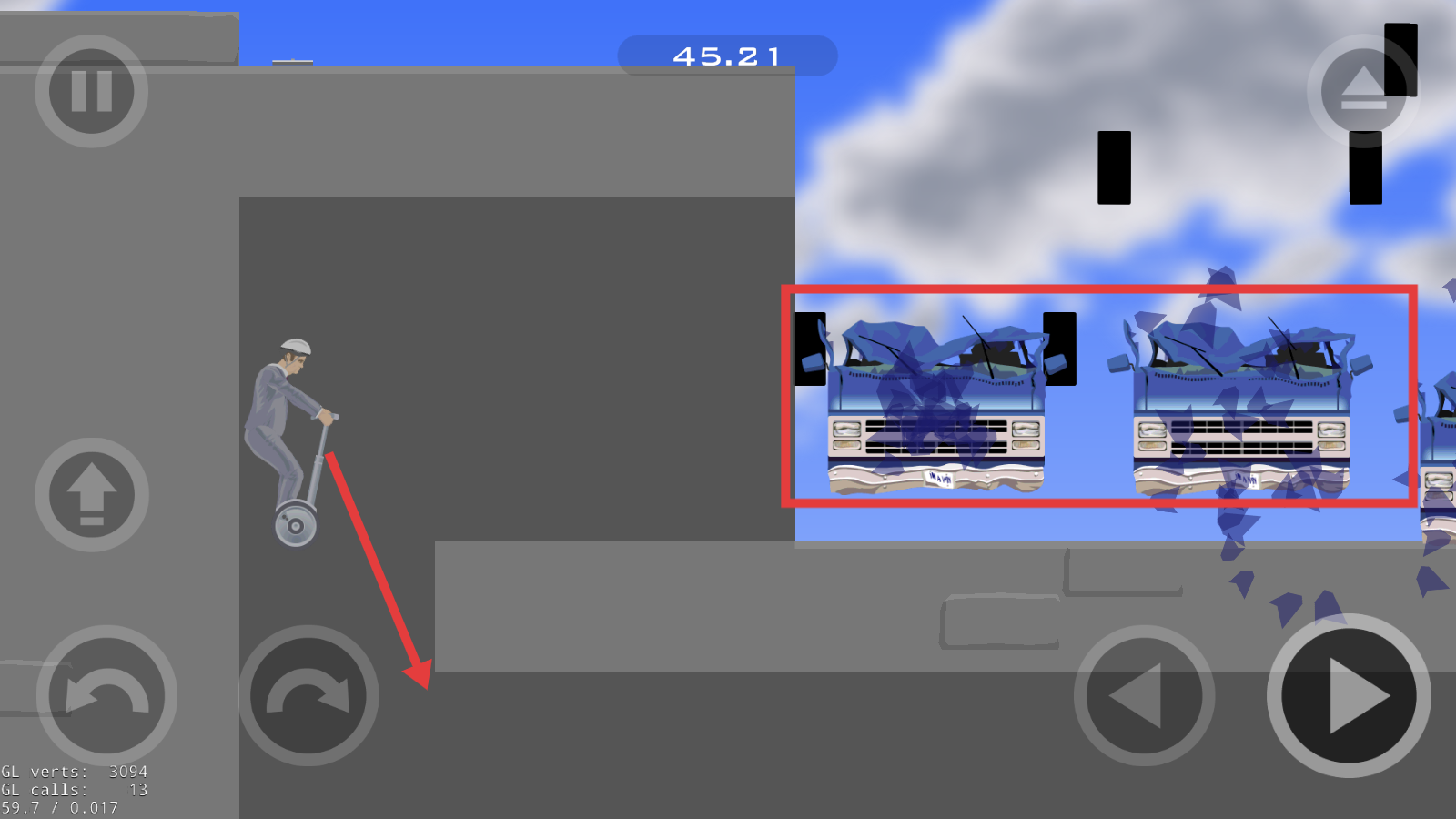 3、遭遇【破碎车辆】障碍时灵活避让,失误可点左侧重置按钮,重新尝试通关。
