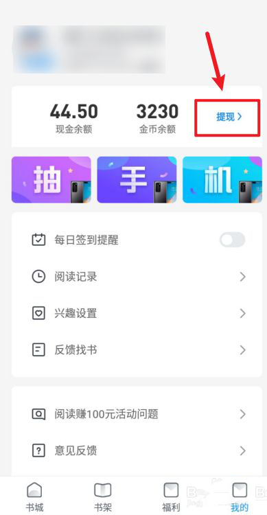 选择右上角的提现。