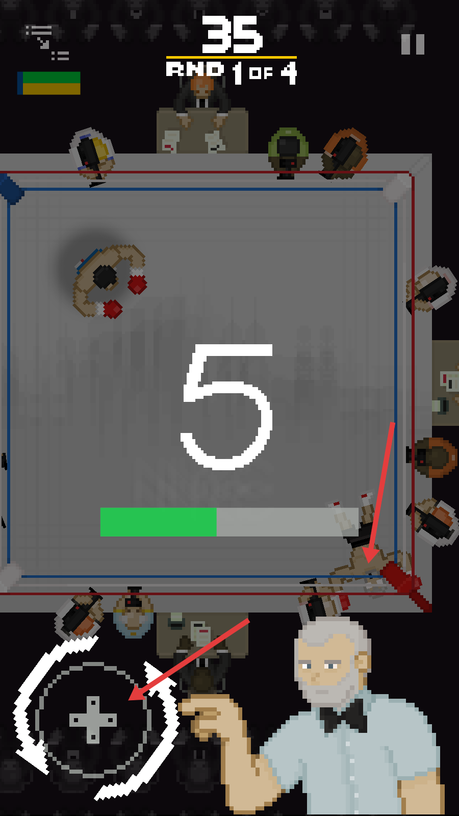 3、格斗分【4回合】,留意血条与回合数(如RND1of4),被击倒后快速操作方向键起身,保持战斗节奏争夺优势。