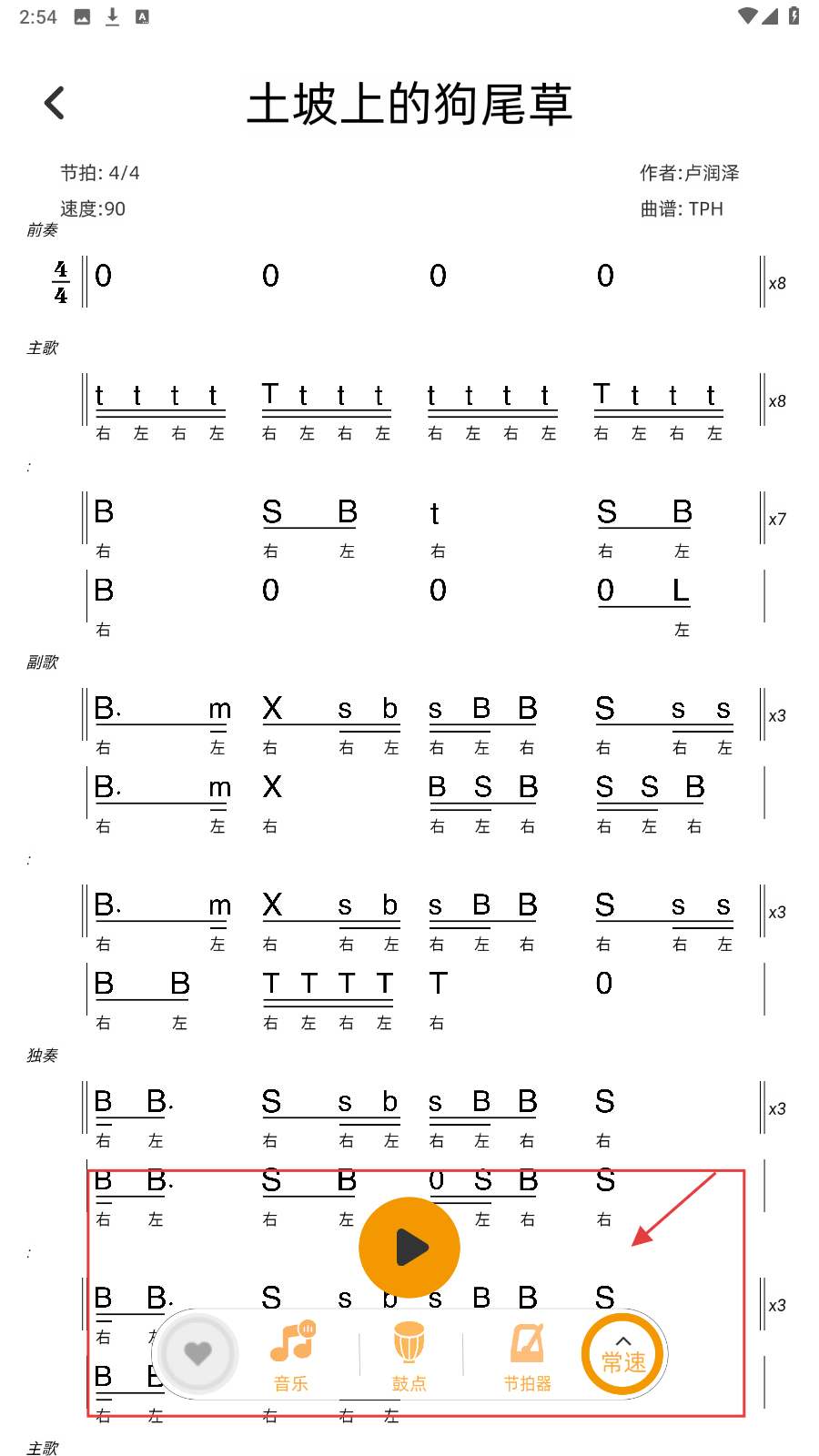 3、在听曲读谱页,利用【节拍器】等功能,跟随曲谱节奏,辅助练习演奏。