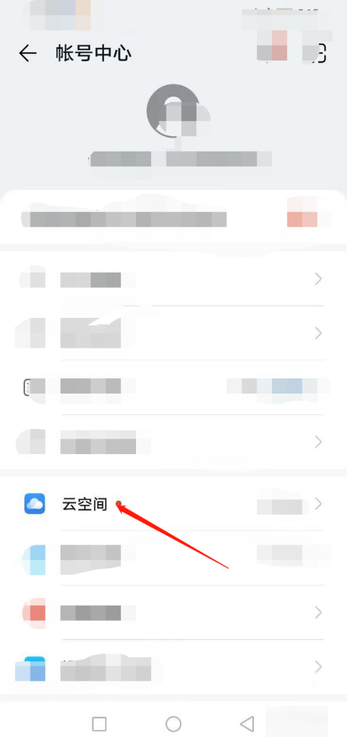 2、点击云空间:在账号中心页面点击云空间。