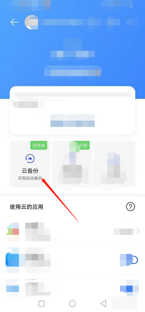 3、点击云备份:在云空间页面中,点击云备份。