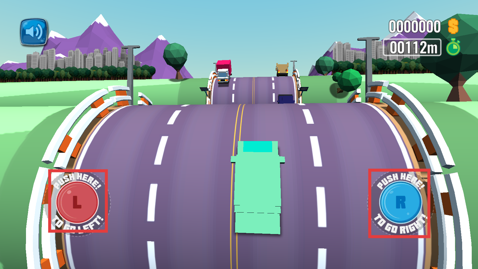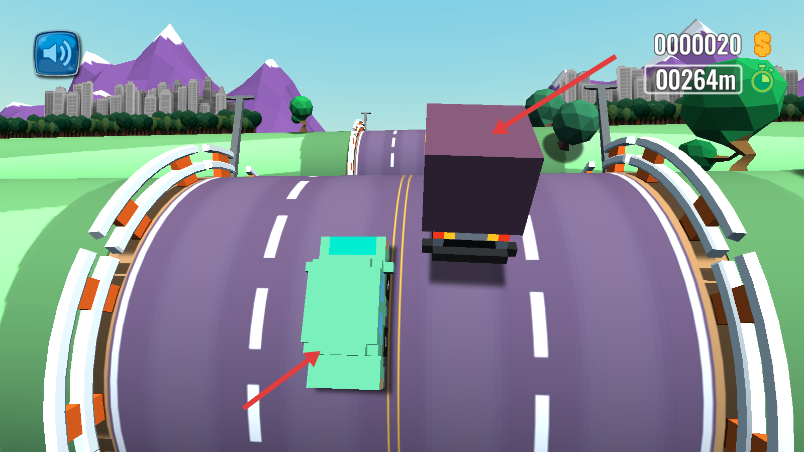 3、遇大型卡车等车辆时,提前左/右移动躲避,避免碰撞以保持行驶距离增长。
