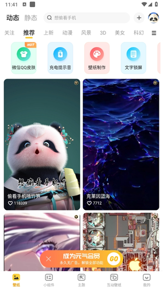 3、各种静态和动态壁纸,让你能够更好的去进行了解,我们可以得到您个性化的壁纸选择;