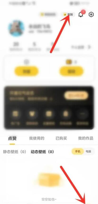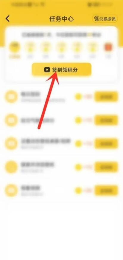2、进入到任务中心,点击上方“签到领积分”图标。