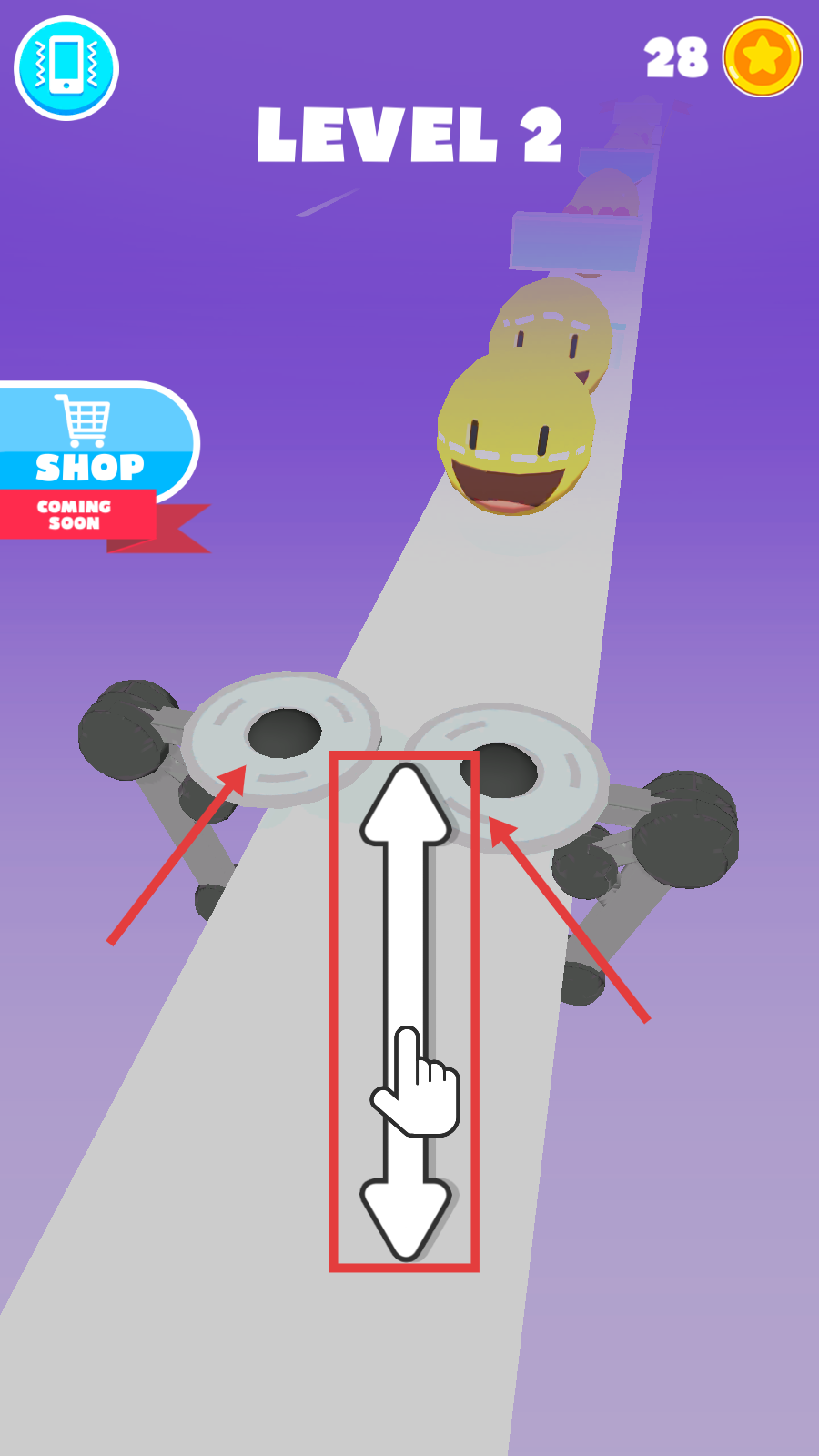 1、进入【LEVEL-2】,通过【上下滑动】屏幕操控圆盘装置,对准前方笑脸障碍物准备切割。