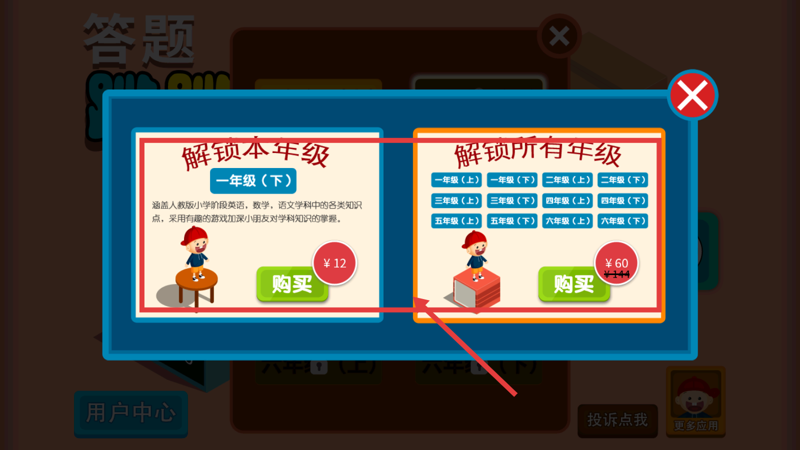 2、在年级列表,可查看各年级(上/下),选择想解锁的年级关卡。