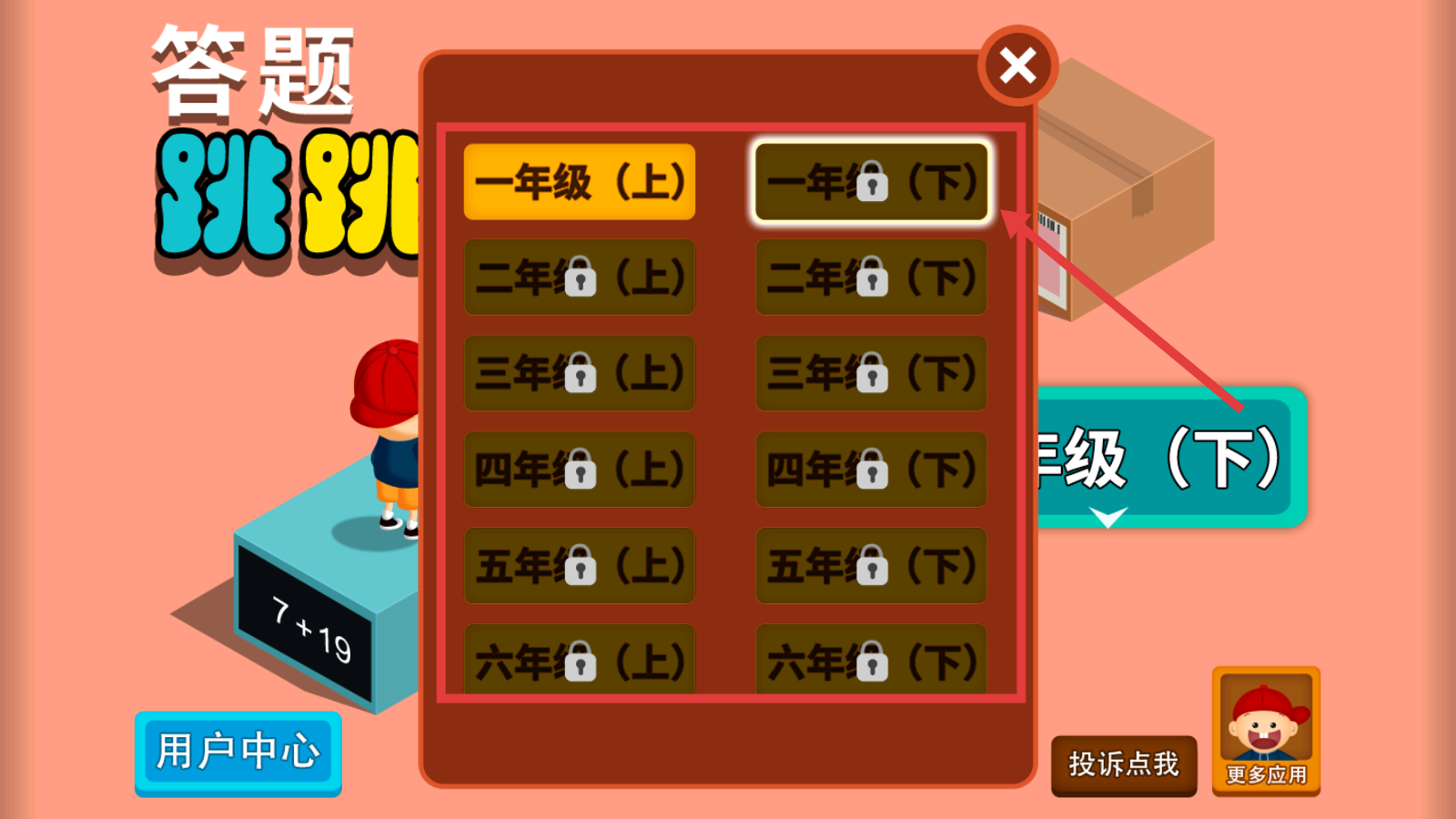 1、点击【一年级(下)】,进入年级选择界面,准备解锁对应内容。