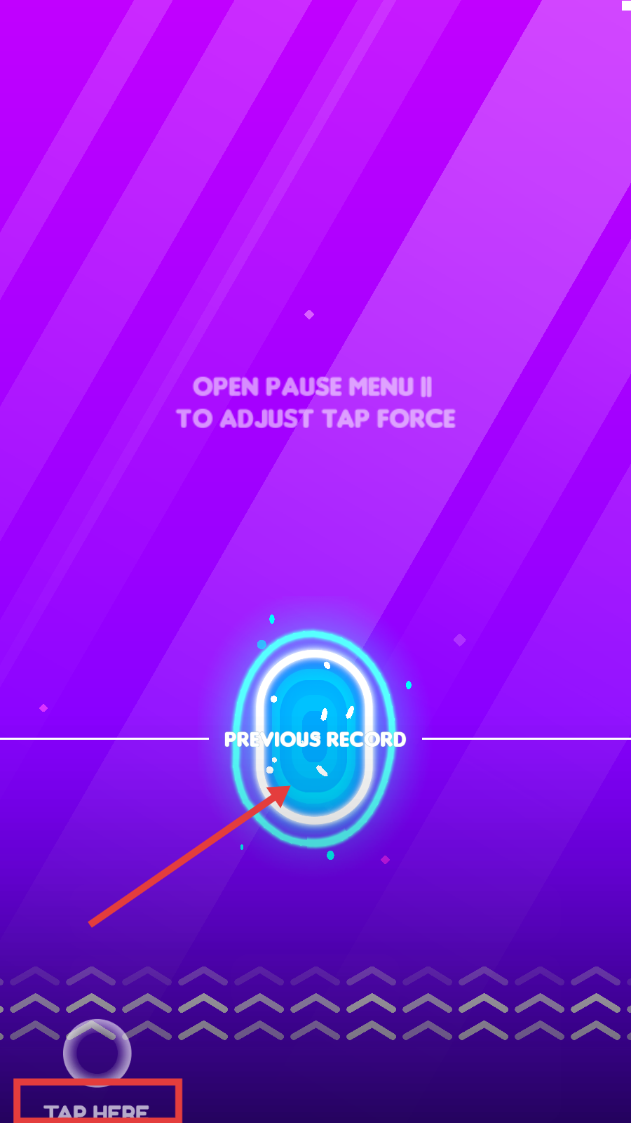 1、点击【TAP-HERE】开始游戏,打开暂停菜单【II】调整点击力度,参考【PREVIOUS-RECORD】优化操作。