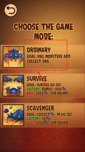 2、在“CHOOSE THE GAME MODE”界面,选择“ORDINARY”模式,目标是杀死怪物并收集DNA。