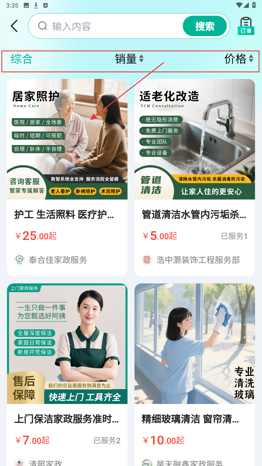 2、在服务列表,按【销量】排序,找热门服务,点进详情查看。