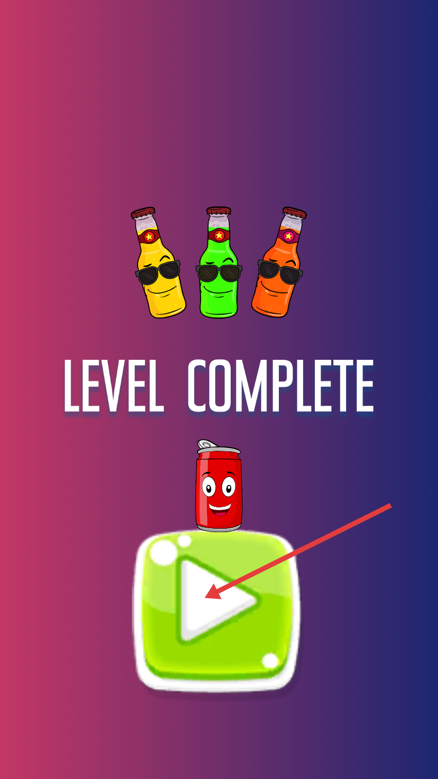 4、关卡完成后,界面显示【LEVEL-COMPLETE】,点击绿色按钮继续挑战下一关。