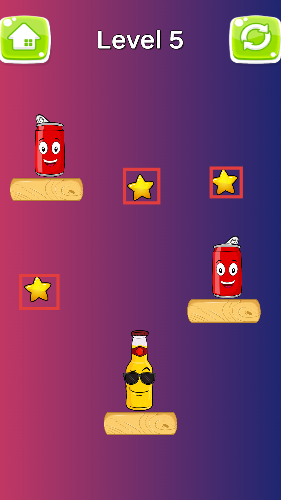 击倒苏打瓶是一款轻松休闲类冒险游戏,运用鲜亮活泼的色调与可爱容器外观设计。通过发射机制将弹珠投向摆放的瓶瓶杯杯,精确测算弧度达成快速击落效果。丰富场景设置包含各类阻挡物排布,实体接触反馈带来观赏愉悦感。特色容器人物搭配多种生动神态增添娱乐性,控制方法简易仅需滑动定位。柔和的配乐混合触碰声效打造舒适环境,不需繁琐战术就能体验爽快干脆的碰撞乐趣。