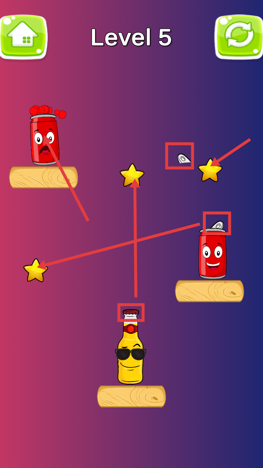 3、操控罐子拉环或瓶盖移动,让其碰撞星星获取积分,同时留意瓶盖位置,完成关卡目标。