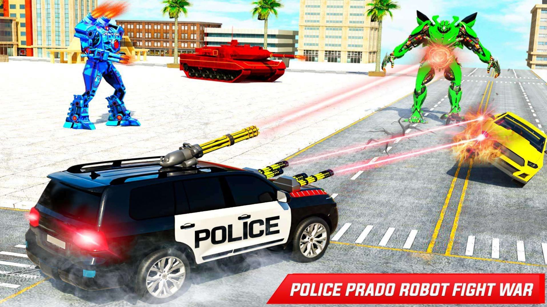 2、飞行普拉多机器人游戏在城市道路上自由骑行,所有科幻挑战的设计理念都很新颖。