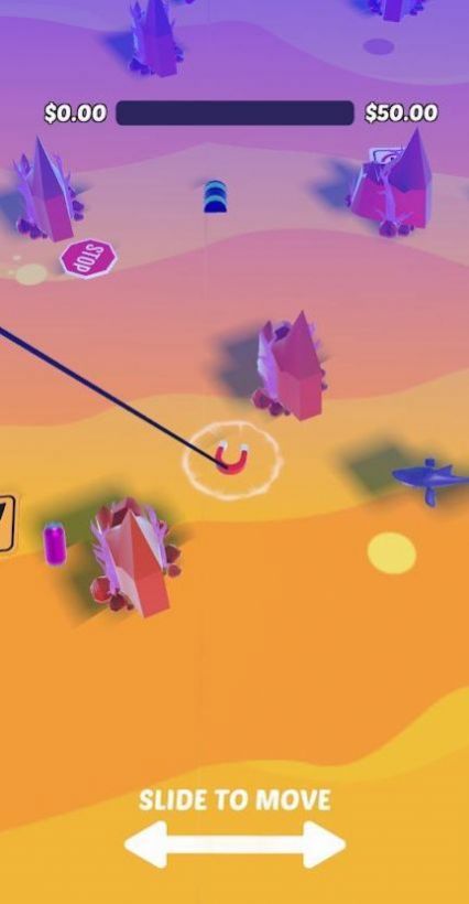 2、磁铁海底清理游戏收集垃圾避开障碍物,用收集到的垃圾换钱,升级装备。