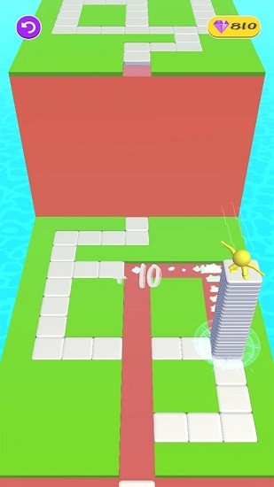 2、你需要快速搭建桥梁,让自己走上终点线,在赛道上奔跑时,需要收集地面上出现的彩色方块,记得越多越好。