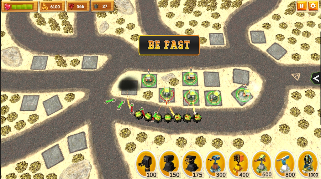 2、在游戏里的场景中玩家是可以随意摆放炮台的,阵容的部署和策略的执行都非常自由。