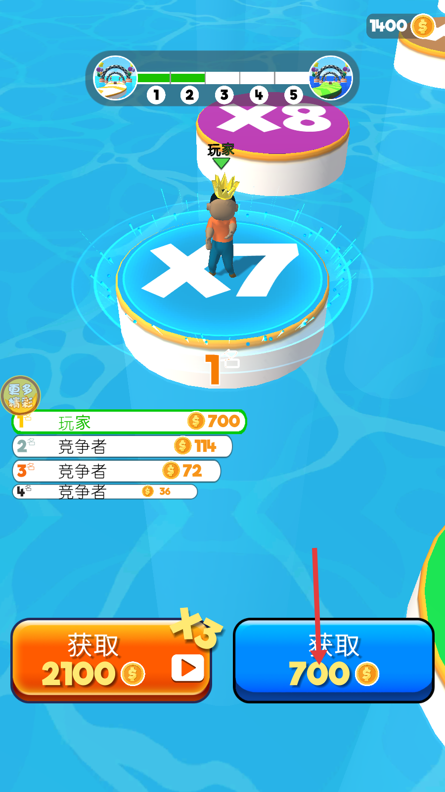 4、结算阶段选择【获取-700】金币,利用赛道上的【×7】【×8】倍增圈,大幅拉开与竞争者的金币差距。