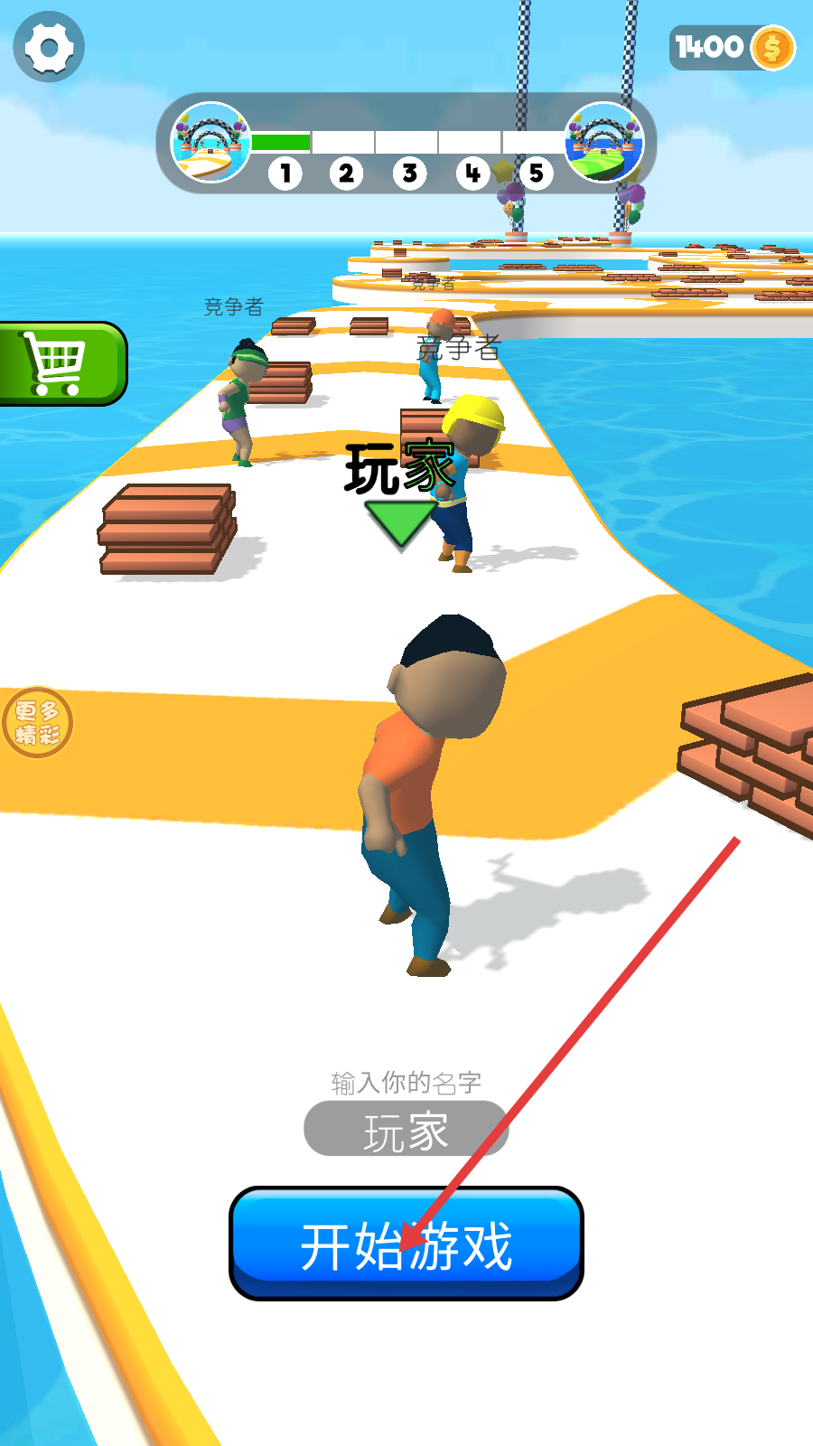 1、点击【开始游戏】进入赛道,留意周围【竞争者】动向,优先收集赛道上的【木材-堆】,抢占前期资源优势。