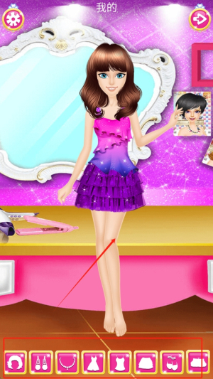 2、为女主角进行美妆和搭配,主角形象可爱,美妆步骤细致,特色在于互动专注,玩法有目标,不盲目。