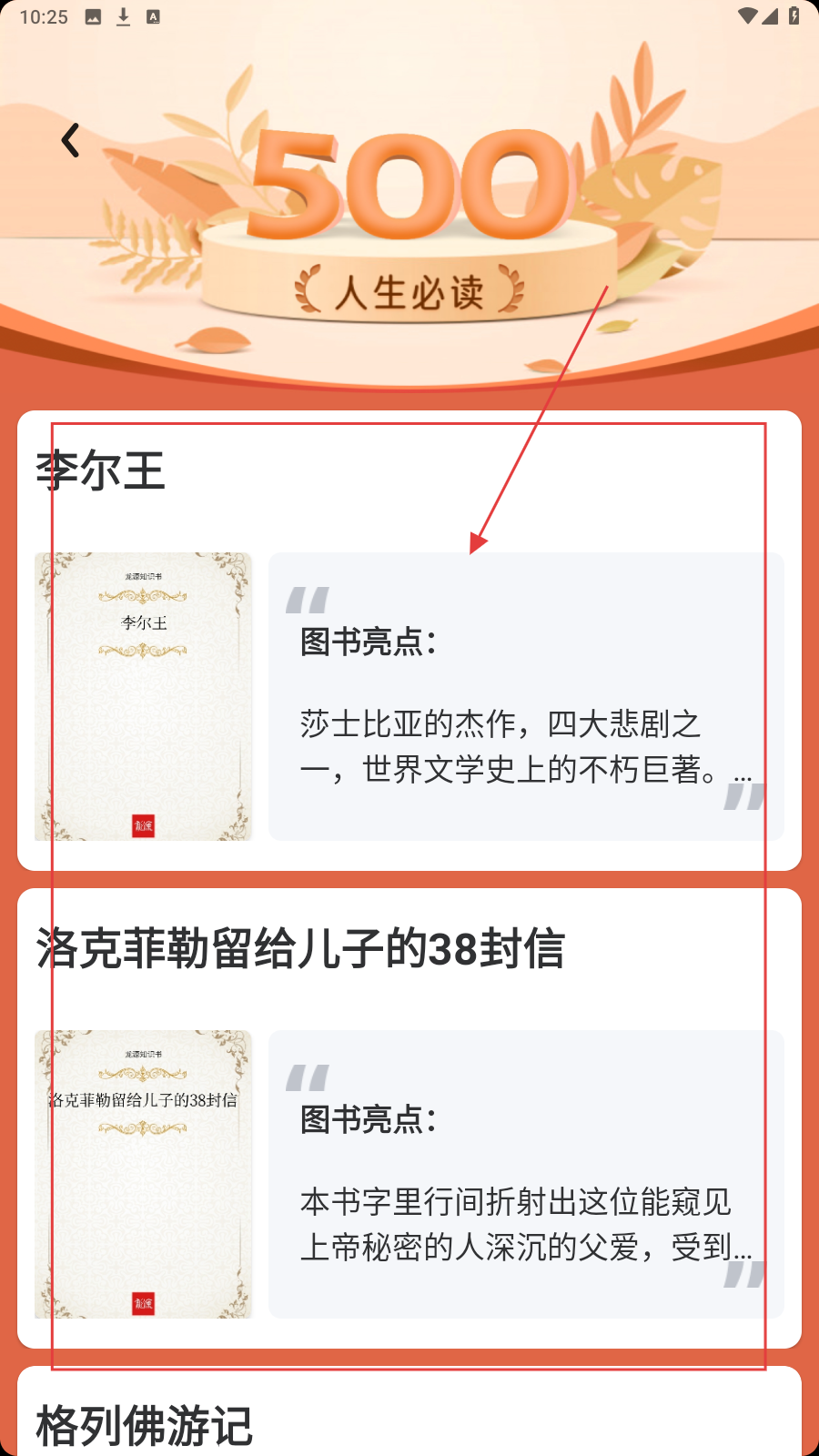 2、进入【人生必读】页面,点击心仪的书籍。