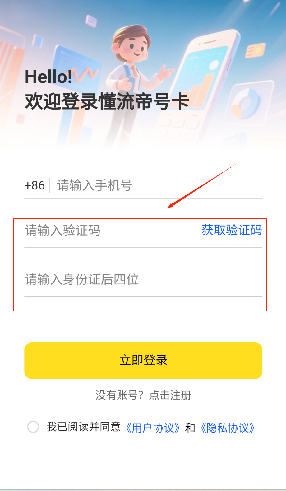 2、输入手机号和验证码后,还需填写身份证后四位呀。验证码同样点击右侧蓝色文字获取啦。