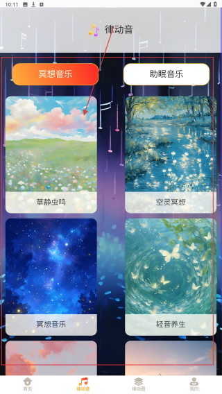 3、点击下方【律动音】进入页面,选择想听的音乐,点击播放。