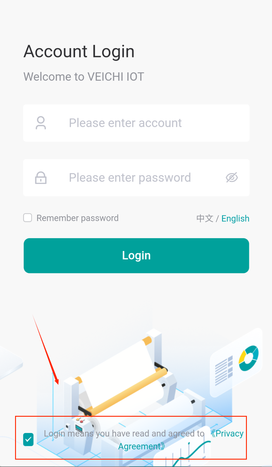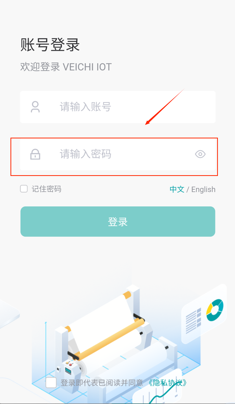 3、语言切换在右下角,支持中英文切换呀。登录按钮是醒目的蓝绿色,点击前需确认同意隐私协议哦。