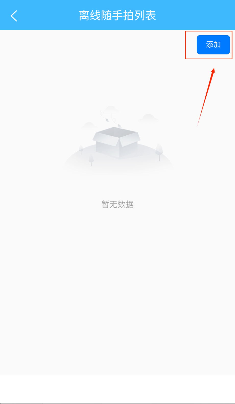 3、登录后点击"离线随手拍"功能,右上角蓝色"添加"按钮可选择照片呀。支持多选批量上传哦。