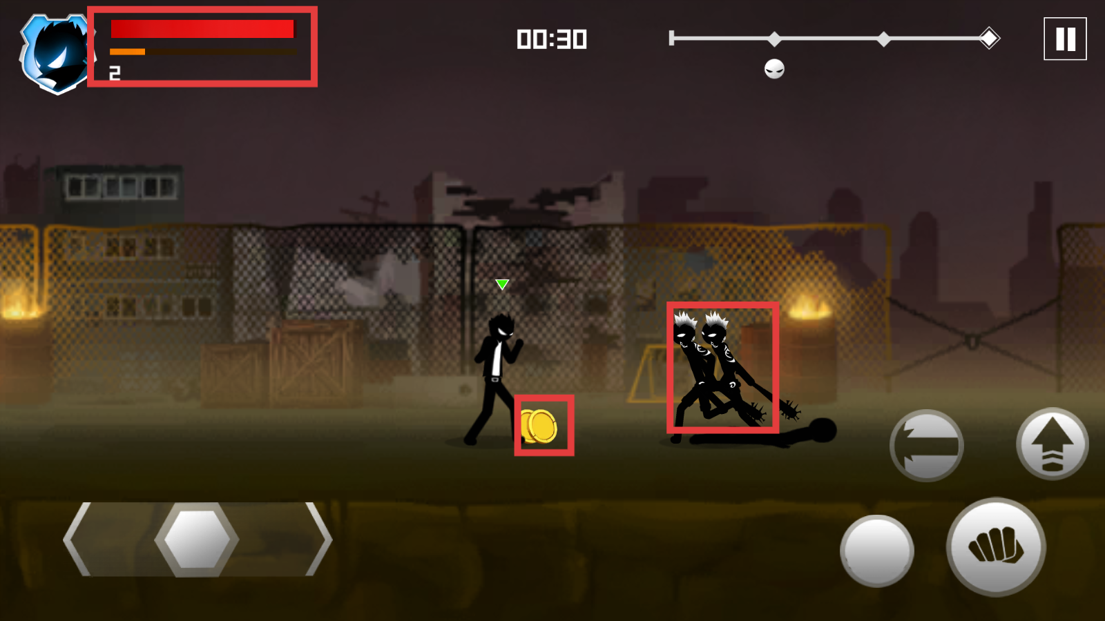 3、战斗中拾取地面金币,关注左上角血条,保持20%以上血量,优先击败双持武器敌人。