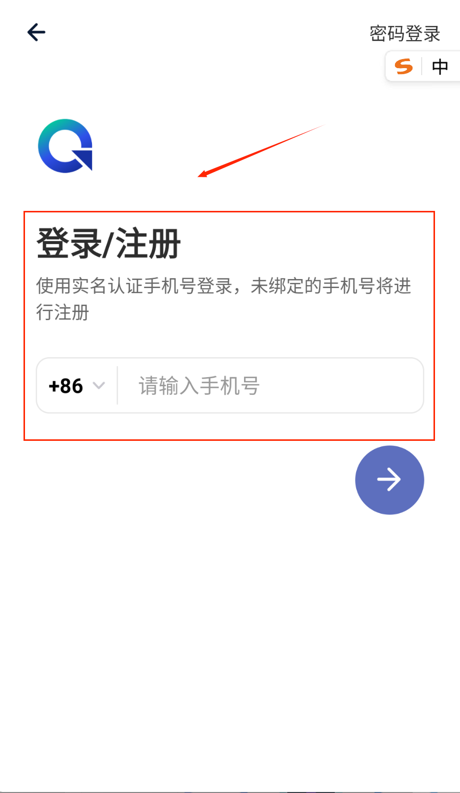2、登录页支持密码或验证码两种方式,输入 86手机号和密码,或获取短信验证码呀。密码框右侧眼睛图标可切换显示啦。