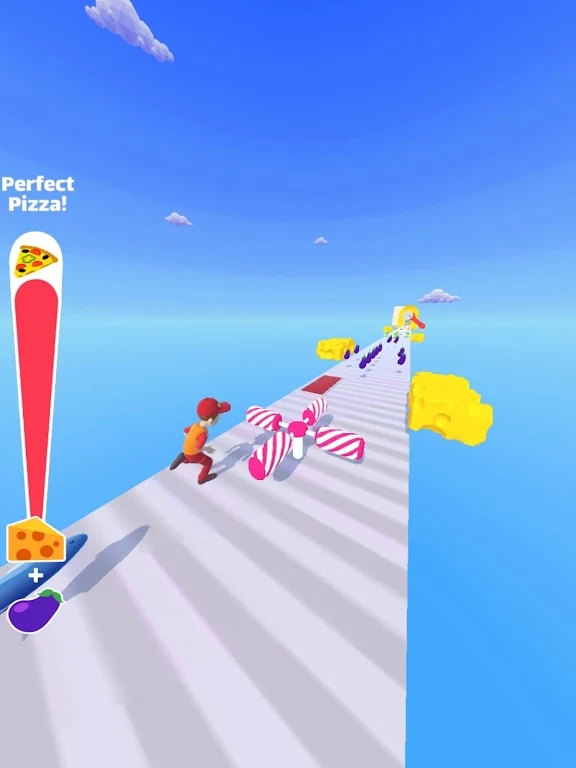 2、披萨趣味跑3D游戏简单的操作模式让玩家快速上手体验,难度适中。