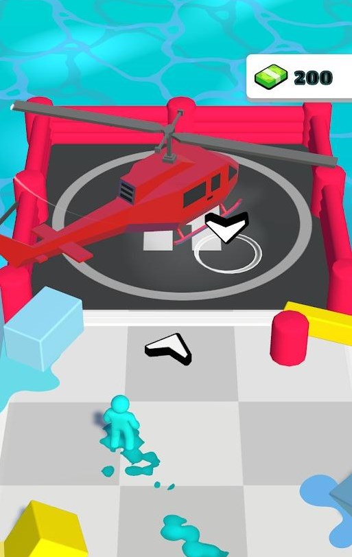 3、开始一个简单的教学关卡,滑动屏幕控制角色移动,找到直升机就上去。