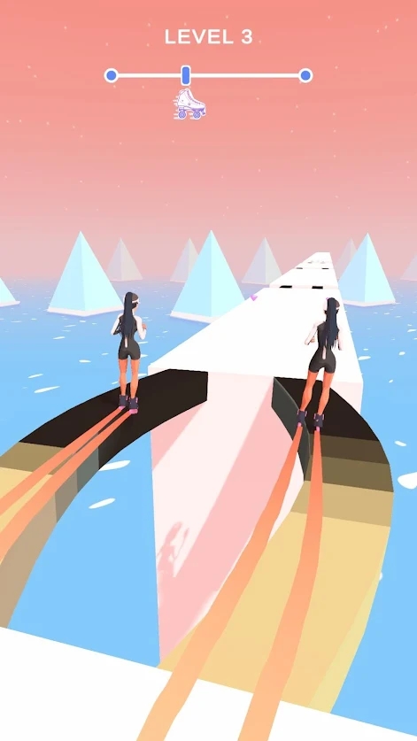 3、双人滑游戏的卡通风格的滑冰跑酷游戏,简单有趣,操作灵活。