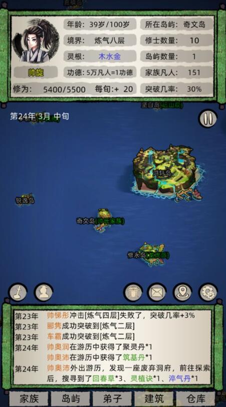 《修仙家族模拟器》这个游戏充满了非常魔幻的仙侠色彩,是一款非常有趣的文字修仙题材游戏。玩家可以在这里感受到浓浓的仙侠气息,可以在这里成为侠客,开启修仙之旅,玩家在修仙过程中遇到各种困难和挑战,不断增强自己的能力,开创前所未有的修仙体系,让你成为修仙者的领袖。