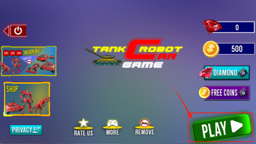 1、进入商店:在“0 TANK LOCKA ROE”主界面点击“PLAY”旁的“SHOP”,领取“FREECOINS”后返回。
