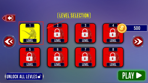4、开始关卡:在“LEVEL SELECTION”界面点第一关“LEVEL”,再点“PLAY”即可开战。