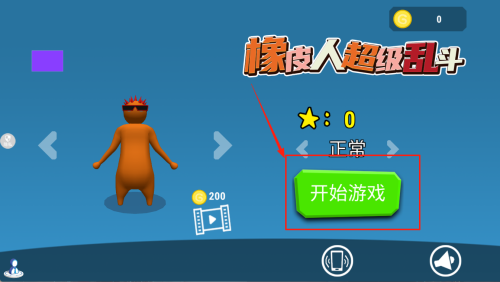 2、进入主界面:在“橡皮人超级乱斗★:0”界面点击“开始游戏”进入主菜单。