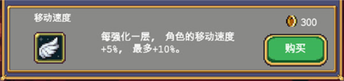 每强化一层,角色的移动速度 5%,最多 10%。