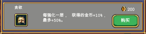 每强化一层,获得的金币 10%,最多 50%。