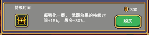 每强化一层,武器效果的持续时间 15%,最多 30%。