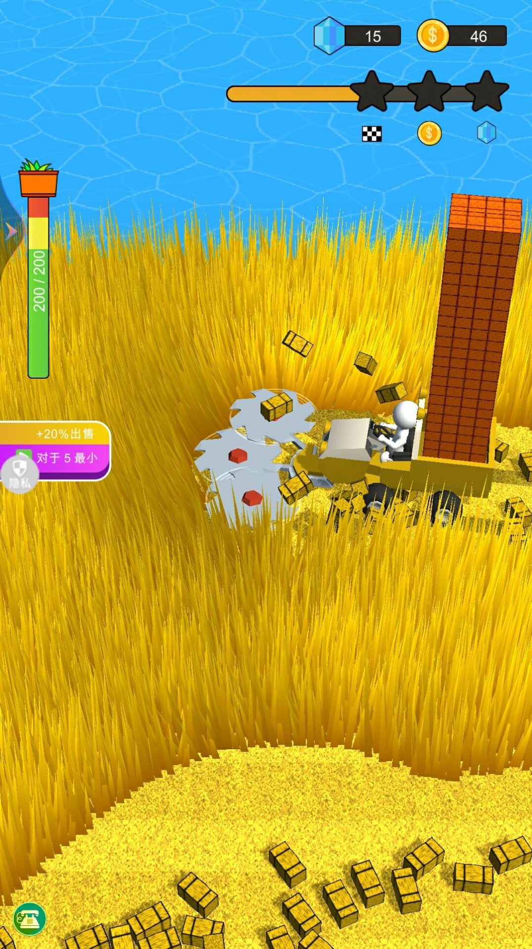 3、自由驾驶拖拉机收割,保持忙碌,新手可以直接动手操作,无需操作。