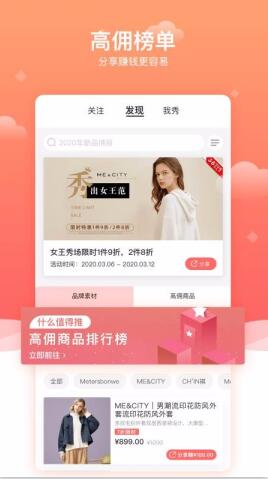 2、随时为你推荐热销榜单,也可以查看汇总的高佣商品,支持你的体验。