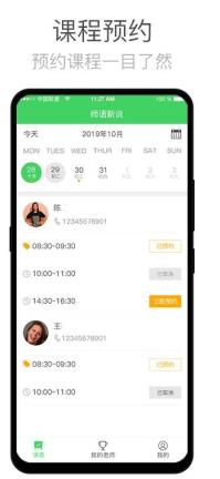 1、非常的完整课程的信息,以日历的形式展示课程,以便更好的预约。