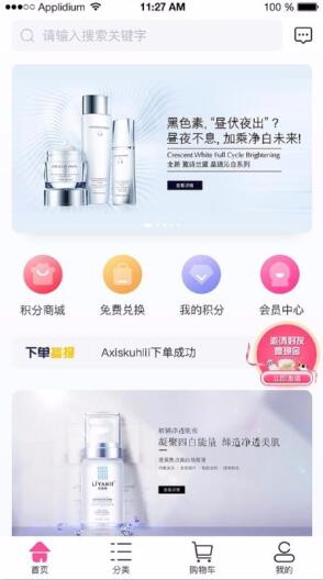 3、按照分类找到想要的护肤品,切换到分类中心即可分类找到需要的护肤品。