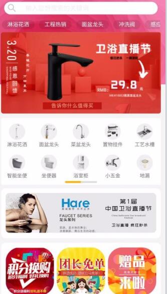 2、还有各种节日活动优惠,比如平台的卫浴直播节里面就推送了丰富的节日价格商品。