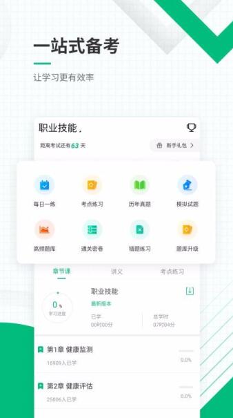 1、丰富的备考刷题模式,刷题页面提供模拟考试、通关密卷以及错题练习等模式。